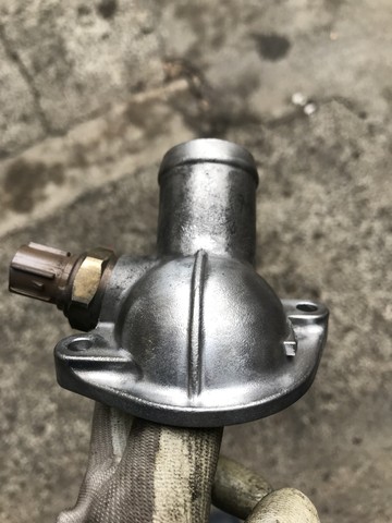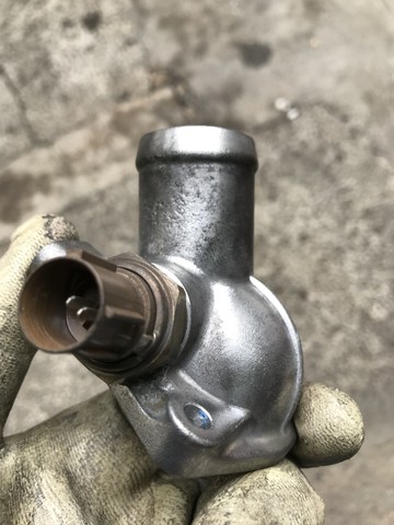 今回は、暫く停車したままでいると温度も上がり ヒーターから暖かい空気が出て来るが、走行すると(特に高速道路を走ると)直ぐに水温計も下がり、ヒーターから寒い空気しか出て来なくなると言う事で、サーモスタットの不具合の疑いが濃厚と判断し、交換致しました。